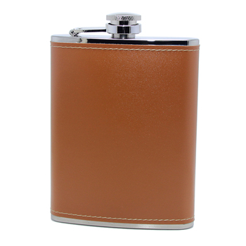 8Oz Pocket Heupfles Rvs Bruin Lederen Gewikkeld Cover Alcohol Fles Liquor Reizen Drinkware Drinker Whisky Fles