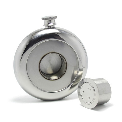 ขวดแก้วกลมสะโพกขนาด5ออนซ์ใส่ถ้วยแก้วแบบพกพาสำหรับเดินทางไวน์สแตนเลสงานปาร์ตี้บาร์ของขวัญขวดสะโพกกลมแกะสลักจากหน้าต่าง